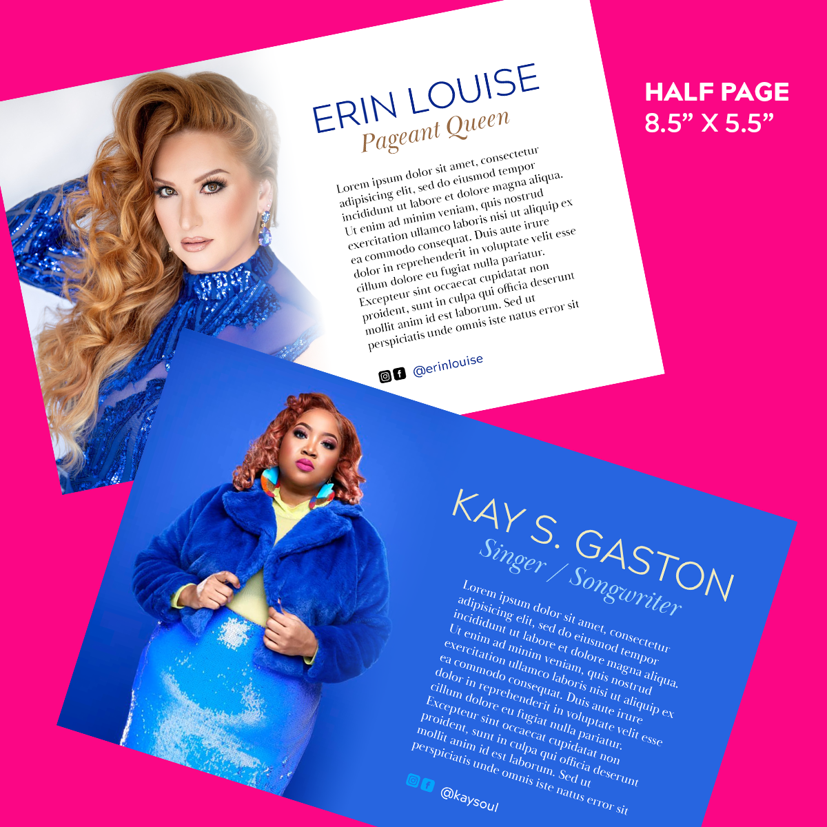 Please note that the pages may vary depending on photos and info provided. We reserve creative rights of the layout. Information may get edited depending on length.